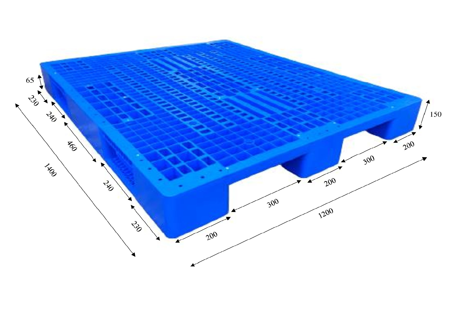 Pallet nhựa 1400x1200x150mm 3 Chân thẳng chuyên dùng để kê hàng, xuất khẩu, nâng hạ hàng hóa, lót sàn trong kho lạnh hoặc thùng xe, lưu trữ hàng hóa tại kho bãi,chống tĩnh điện, chống ẩm mốc và ngập úng trong kho hàng.